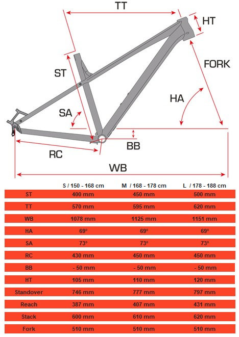 - Kerékpár méreteM, L, S